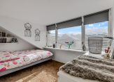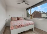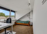Een vaste trap (niet standaard in dit type woning!) leidt naar de tweede verdieping. Hier vind je nog eens twee slaapkamers, elk voorzien van een dakkapel. De slaapkamer aan de voorzijde is ook uitgerust met een elektrisch rolluik. Op de voorzolder bevinden zich de cv-installatie (Vaillant Ecotec Plus uit 2013) en extra bergruimte achter de knieschotten.