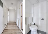 Achter de voordeur bevindt zich de ruime entreehal met daarin de meterkast en de intercom. Vanuit de hal krijg je toegang tot de keuken, toiletruimte, woonkamer en 2 slaapkamers.