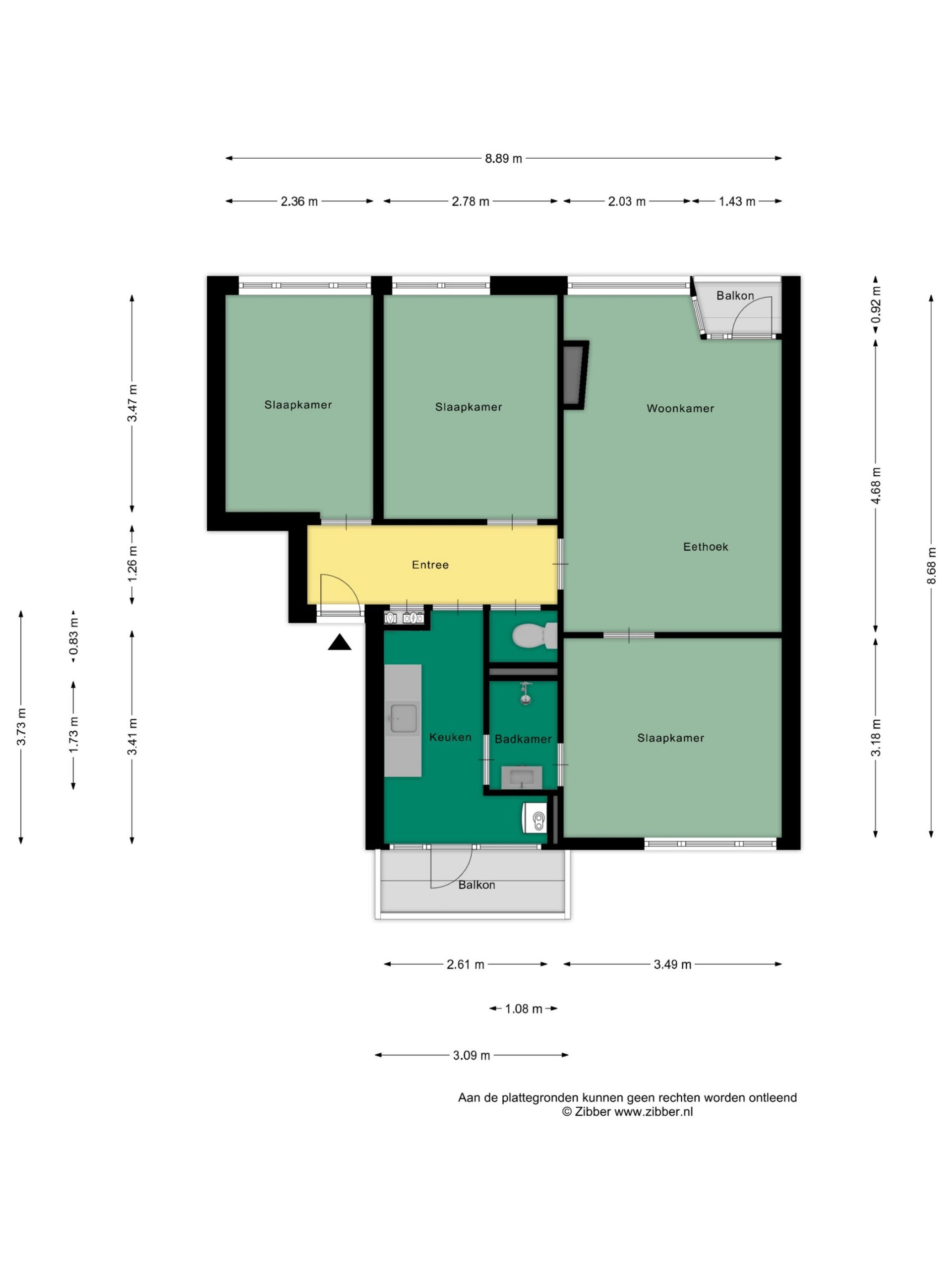 Vanuit de keuken zijn het balkon en de badkamer bereikbaar. Het balkon is gesitueerd op het noordwesten, waardoor je kunt genieten van de ondergaande zon en het mooie uitzicht op de groene omgeving.