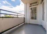 De woonkamer heeft een prettige lichtinval door het kamerbrede raam en is voorzien van een praktische vaste kast, een deur naar het balkon (inclusief rolhordeur), een radiatorombouw en een elektrische screen.