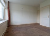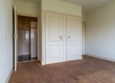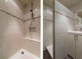 De prettig ruime slaapkamer (ca. 16m2) is voorzien van een deur naar het balkon (inclusief rolhordeur), een radiatorombouw en een kastenwand met aansluiting voor de wasmachine. Vanuit de slaapkamer heb je toegang tot de badkamer. Deze is geheel betegeld met een lichte gemarmerde wandtegel en voorzien van een wastafelmeubel en een douchehoek met plateau. Op de vloer liggen antracietkleurige tegels.