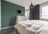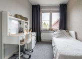 Ook de overloop van de 2e verdieping kenmerkt zich door de fijne lichtinval vanwege het zijraam. Aan deze overloop grenzen twee ruime slaapkamers. De slaapkamer aan de voorzijde is voorzien van een Velux-dakraam met hor en verduisteringsgordijn en biedt ook ruimte voor praktische voorzieningen: hier bevindt zich de opstelling van de HR-cv-combiketel (Atag uit 2016), de mechanische ventilatie-box (Duco) en de aansluitingen voor wasmachine en droger.