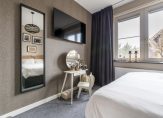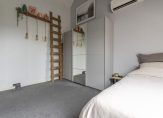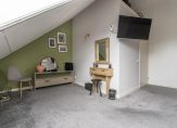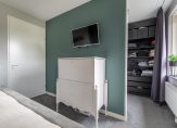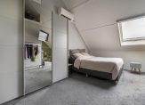 De slaapkamer aan de achterzijde is eveneens een bijzonder lichte ruimte dankzij het grote Velux-dakraam en heeft een hoog plafond van maar liefst 4,40 meter. Deze kamer is uitgerust met een airco-unit en biedt extra bergruimte achter de knieschotten, evenals een bergzolder voor het opbergen van spullen die je niet dagelijks nodig hebt.