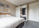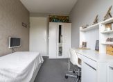 Aan de ruime overloop, die heerlijk licht is dankzij het zijraam, grenzen drie slaapkamers en de badkamer. De slaapkamers zijn alle drie voorzien van draai-/kiepramen en de grootste slaapkamer beschikt over een heuse walk-in-closet, met voldoende ruimte voor al je kleding. Alle wanden zijn glad gestuukt, zodat ze direct gesausd kunnen worden. Elke slaapkamer heeft bovendien één wand met behang, wat extra sfeer toevoegt.