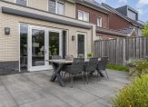 De achtertuin is een heerlijke plek om te ontspannen en biedt volop mogelijkheden voor buitenleven. Het grote terras loopt over de volledige breedte van de woning en is voorzien van een buitenkraan en een elektrisch bedienbaar zonnescherm, zodat je zowel zon als schaduw makkelijk kunt doseren. Rondom het terras zorgen diverse borders met beplanting en kunstgras voor een onderhoudsvriendelijke en sfeervolle tuin. Via een poortdeur is de achtergelegen parkeerplaats eenvoudig bereikbaar.