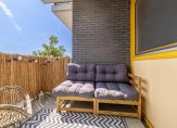 De lichte woonkamer (ca. 24m2) is een aangename leefruimte met ramen aan zowel de voor- als de zijkant; de hoekligging zorgt hier voor extra veel daglicht. De ramen aan de voorzijde zijn voorzien van een screen en via een deur stap je zo het balkon op. Deze is gesitueerd op het oosten en hier kun je heerlijk van de ochtendzon genieten!