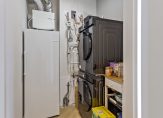 In de inpandige berging tref je de aansluitingen voor de wasmachine en droger, plus de mechanische ventilatie-unit. Superhandig om alles netjes uit het zicht te houden!