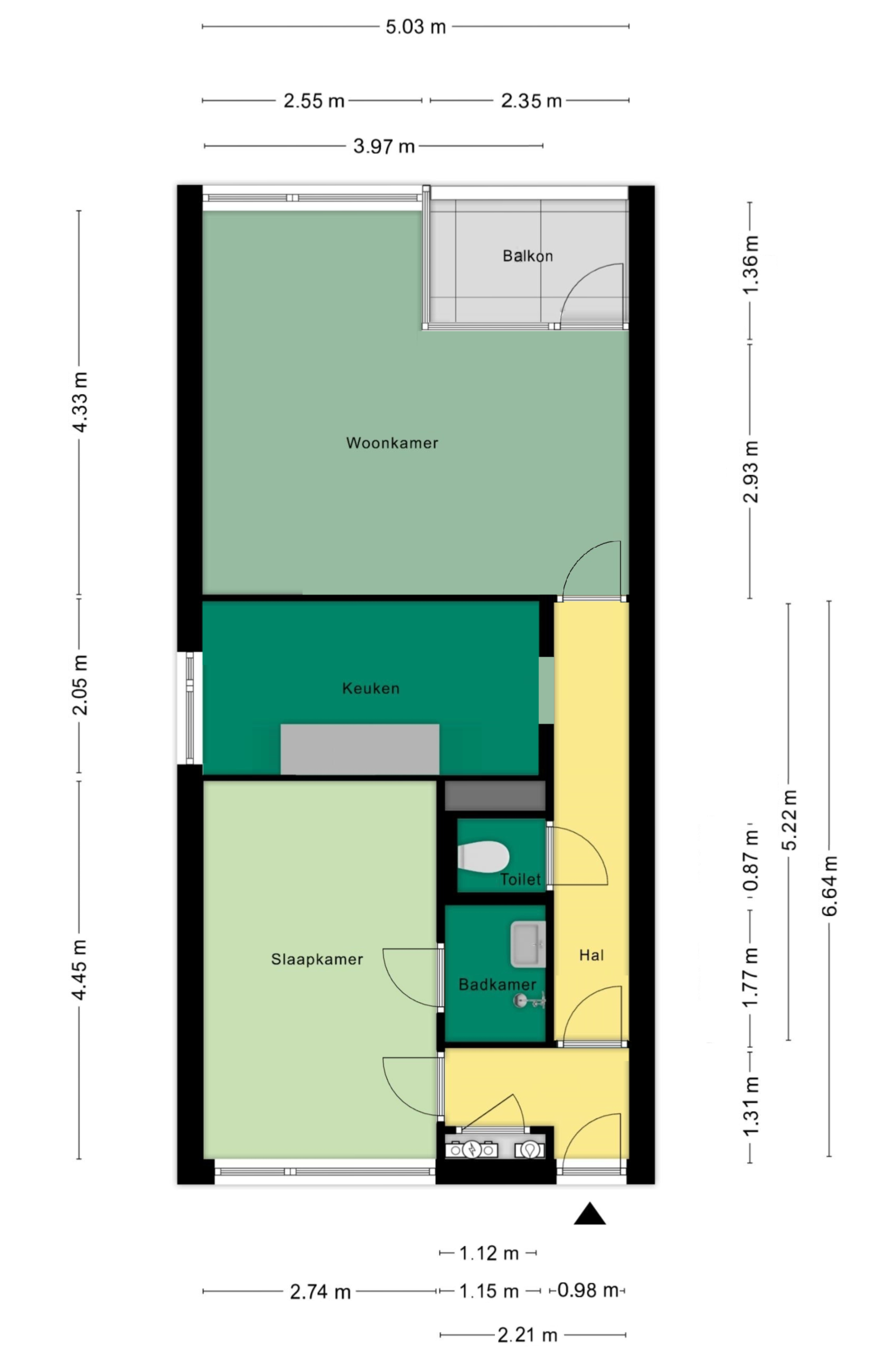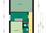 Na het openen van de voordeur stap je het voorportaal binnen, waarvandaan je toegang hebt tot de hal, de slaapkamer en de meterkast.