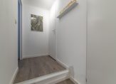 Je komt het appartement binnen in de hal, waar je de videofooninstallatie vindt en een vaste kast met daarin in de aansluiting voor de wasmachine, de elektrische boiler (80 liter) en de mechanische ventilatie-unit. Vanuit de hal heb je toegang tot de slaapkamer, badkamer, toiletruimte en woonkamer/ keuken.
