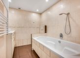 Door de uitbouw aan de achterzijde profiteer je op de 1e en 2e verdieping van verrassend veel ruimte. Aan de overloop grenzen 3 slaapkamers (ca. 14m², 7m² en 5m²), een ruime badkamer en een praktische bergkast. De slaapkamer aan de voorzijde is voorzien van een inbouwkast en de slaapkamer aan de achterzijde beschikt over een separate werkhoek/inloopkast (ca. 3m2). In de badkamer heb je de beschikking over een ligbad/douchecombinatie, een 2e toilet, een breed wastafelmeubel met waskom en spiegelkast en een designradiator. De wanden zijn betegeld met cameekleurige tegels met een decorrand, op de vloer liggen bruine plavuizen en het plafond is voorzien van inbouwspots.