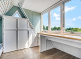 Een vaste trap leid je naar de 2e verdieping waar je dankzij de uitbouw maar liefst drie slaapkamers tot je beschikking hebt. De achterste slaapkamer is voorzien van een dakkapel en een op maat gemaakte kastenwand en bureau. De andere 2 slaapkamers zijn voorzien van een Velux-dakraam. De ruime overloop biedt desgewenst nog meer bergruimte en ook vind je hier de cv-ketel (Remeha Avanta uit 2014).
