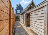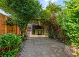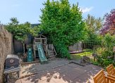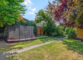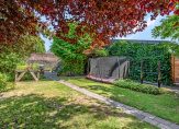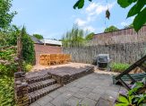• Riante, 45 meter diepe tuin met vier houten bergingen (totaal ca. 39m²);