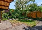 De tuin is met zorg aangelegd en bestaat uit een gazon, volwassen groen, diverse borders, bestrating én meerdere terrassen: kies jouw favoriete plekje in de zon of juist in de schaduw. Dankzij de afmetingen is er ruimte voor alles: een grote veranda, een eigen moestuin of speeltoestellen voor de kinderen.