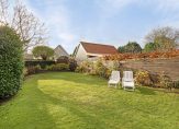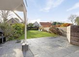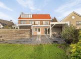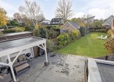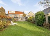 Op het bij de achtergevel gecreëerde grote terras kun je een groot deel van de dag van de zon genieten. Voor wat schaduw zoek je de beschutting van de veranda. Het grote gazon en de borders met diverse soorten beplanting geven de tuin een mooie groene uitstraling.