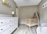 De overloop en beide slaapkamers zijn voorzien van een lichte eikenstructuur laminaatvloer en vrijwel alle wanden zijn afgewerkt met glasvezelbehang.
