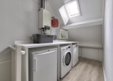 De voorzolder is voorzien van een dakraam, een praktische ombouw voor de wasmachine en droger, bergruimte achter knieschotten en een toegangsluik naar de bergzolder. Ook staat hier de HR-cv-combiketel (merk: Nefit / bouwjaar: 2008) opgesteld en de mechanische ventilatie-unit is netjes uit het zicht weggewerkt. De 3e slaapkamer is met 14m2 prettig ruim en is voorzien van een dakkapel, kastenwand, bergruimte achter knieschotten, inbouwspots en een radiator met ombouw.