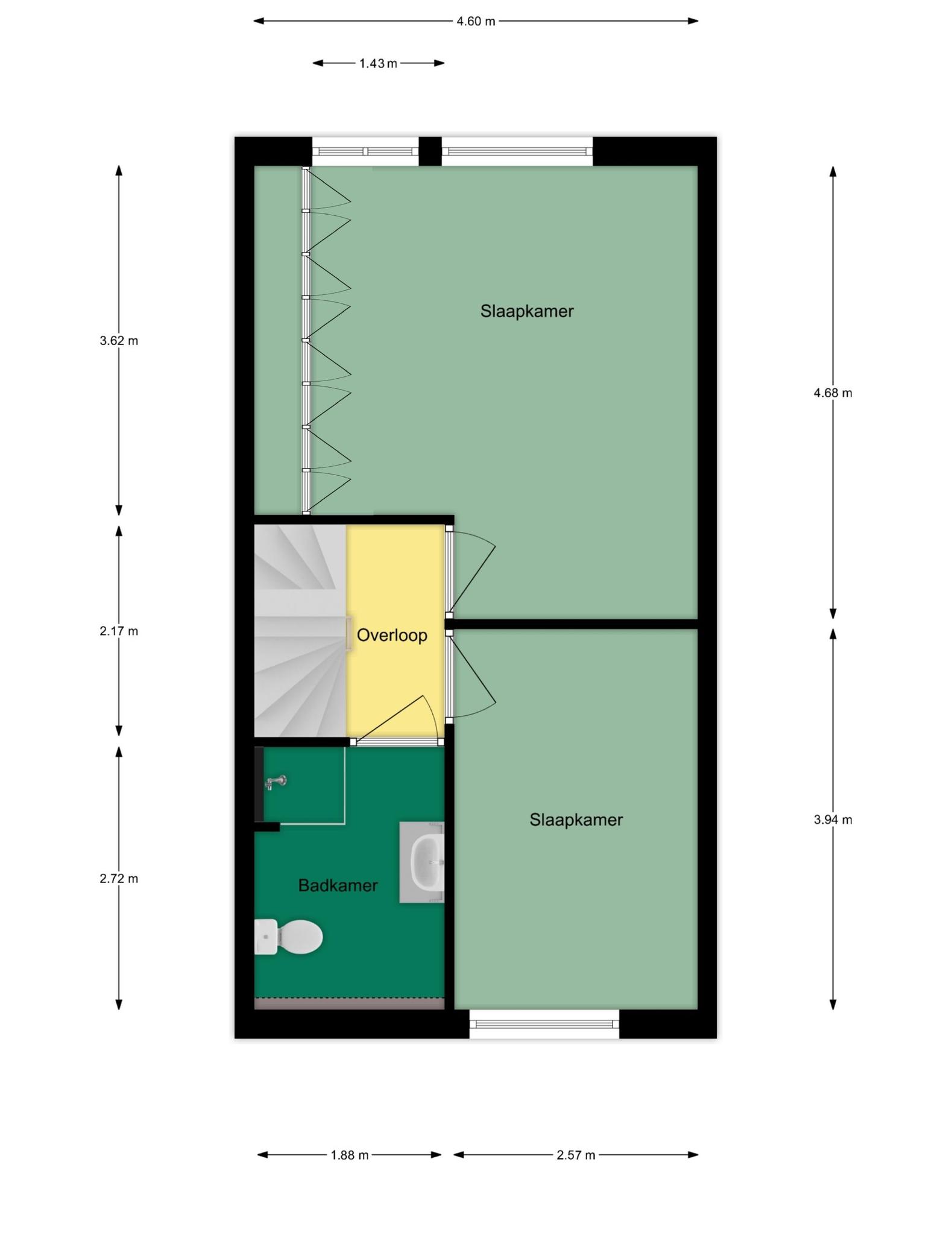 Aan de overloop grenzen 2 ruime slaapkamers en de badkamer. Voorheen telde deze verdieping 3 slaapkamers, maar er is van 2 slaapkamers 1 grote kamer gemaakt. Dit resulteert in een heerlijk ruime slaapkamer van maar liefst 19m2, die voorzien is van een grote kastenwand. Met 10m2 is de andere slaapkamer ook prettig ruim.