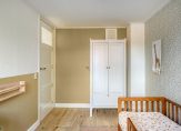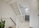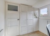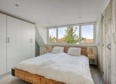 Op de overloop van de 2e verdieping bevindt zich een praktische vaste kast. Vanaf deze overloop krijg je via een paneeldeur toegang tot de 4e slaapkamer, die in 2016 voorzien is van een dakkapel. Hierdoor is er een mooie slaapkamer ontstaan met een vloeroppervlak van circa 17m2, een rolluik en een op maat gemaakte kastenwand met steigerhouten deuren. Zowel de wanden als het plafonds zijn glad gestuukt en het plafond is voorzien van inbouwspots.