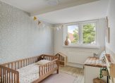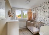 De heerlijk ruime woonkamer is voorzien van een erker en door de ruimte kun je hier een gezellige zithoek en een lees- of speelhoek creëren. De glad gestuukte wanden en plafonds, de eiken lamel parket vloer en de houtkachel vormen hier een mooie en sfeervolle basis. De trap-/voorraadkast biedt prettig veel bergruimte voor je boodschappen, speelgoed en/of spelletjes.