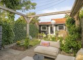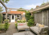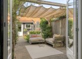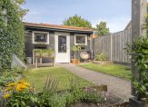 De achtertuin is bereikbaar via het pad naast de woning en via de openslaande deuren vanuit de woonkeuken. Deze sfeervol aangelegde tuin is gesitueerd op het noordwesten en ingericht met sierbestrating, een gazon en borders met diverse soorten beplanting. Het terras bij de achtergevel is voorzien van een pergola met schaduwdoek, waardoor je op zonnige dagen zelf de zon en schaduw kunt doseren.