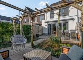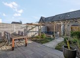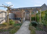 De achtertuin is ca. 10 meter diep en 6 meter breed en is gesitueerd op het oosten. Omdat je ook de zuidzon een groot deel van de dag meepakt, is er ook een terras bij de berging gecreëerd. Samen met het grote terras bij de achtergevel heb je zo altijd wel ergens een plekje om van zon of schaduw te genieten! Bij de achtergevel kun je desgewenst schaduw creëren met behulp van de elektrische buitenzonwering, die nagenoeg de gehele breedte van het terras beslaat. De pergola’s en de borders met diverse soorten beplanting zorgen van de lente tot aan de herfst voor een mooie groene en kleurrijke omlijsting van deze tuin. Verder is de tuin voorzien van een beregeningssysteem en een buitenkraan en dubbel stopcontact bij de achtergevel. Achterin de tuin staan een houten berging en een haag, die de containers uit het directe zicht onttrekt. De berging is voorzien van verlichting en elektra en via de houten poortdeur bereik je het achtergelegen voetpad.