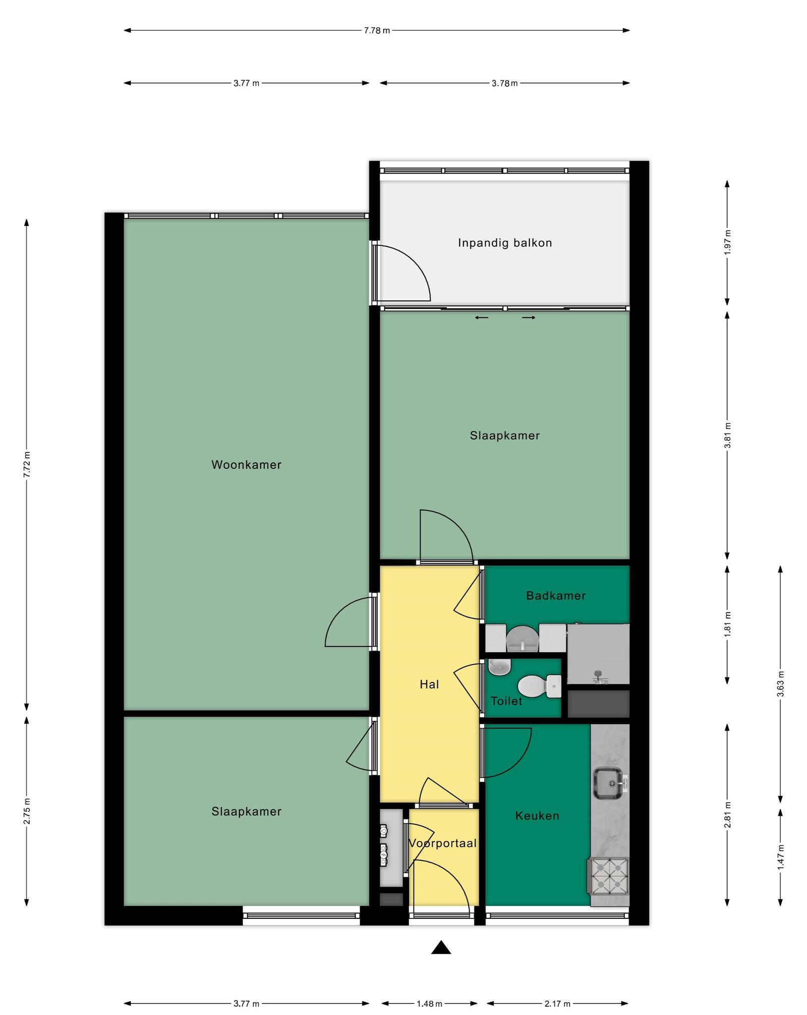 Via lift of trap bereik je de 1e woonlaag, waar wij nummer 21 te koop aanbieden. Je komt het appartement binnen in het voorportaal, waar zich de meterkast bevindt. Vanuit het voorportaal loop je de hal in en daar vind je de videofooninstallatie. Vanuit de hal krijg je toegang tot de keuken, toiletruimte, badkamer, de 2 slaapkamers en de woonkamer.