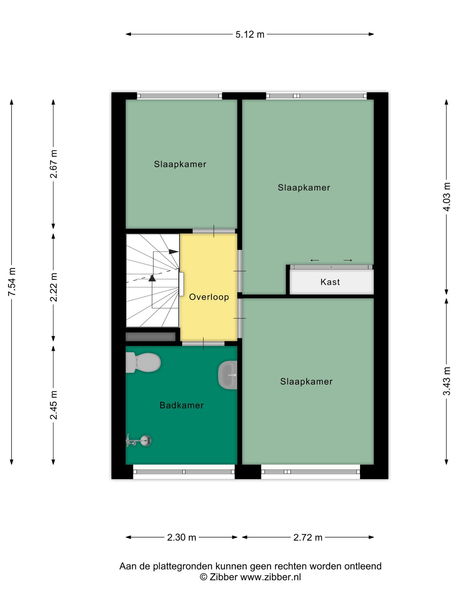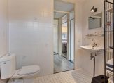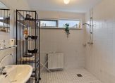 Aan de overloop grenzen 3 slaapkamers en de badkamer. De slaapkamers zijn alle drie recht opgetrokken en in combinatie met de afmetingen (11m2, 10m2 en 6m2) zijn ze daardoor praktisch in te richten. De grootste slaapkamer is voorzien van een schuifkastenwand. De badkamer dateert nog van het bouwjaar, maar is keurig onderhouden. Je hebt hier de beschikking over een wastafel met planchet en spiegel, een radiator, een douchehoek en een 2e toilet. De badkamer is in dezelfde kleurstelling betegeld als de toiletruimte op de begane grond.