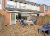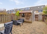 De achtertuin heeft een zonnige situering op het zuidoosten, waardoor je hier een groot deel van de dag van de zon kunt genieten. De tuin is geheel voorzien van bestrating; je kunt dus op elk gewenst plekje een terras creëren. Bij de achtergevel bevindt zich een buitenkraan en elektrische buitenzonwering, zodat je op zonnige dagen de hoeveelheid zon en schaduw kunt doseren. Achterin de tuin staan een houten tuinhuis en een stenen berging en via de poortdeur krijg je toegang tot het achtergelegen voetpad.