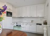 De gedeeltelijk open keuken is voorzien van een L-vormige inbouwkeuken met hoogglans witte fronten en een wit kunststof aanrechtblad. De keuken is weliswaar wat ouder, maar altijd keurig onderhouden en daardoor nog in prima staat. Met een koelkast, magnetron, oven, keramische kookplaat, vlakschermafzuigkap, 1¼ spoelbak en een vaatwasser mogen we het ook een hele complete keuken noemen!