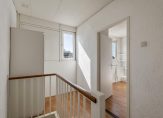 Via een vaste trap kom je op de overloop van de 2e verdieping, waar onder de schuine wand een grote kast is gecreëerd. Hier heb je veel opbergruimte tot je beschikking en staan ook de mechanische ventilatie-unit en de HR-cv-combiketel (Remeha Avanta 35C uit 2011) opgesteld. De 4e slaapkamer is met 12m2 prettig ruim en beschikt eveneens over veel bergruimte. De 2e verdieping is voorzien van een laminaatvloer en kunststof kozijnen met HR++ glas.