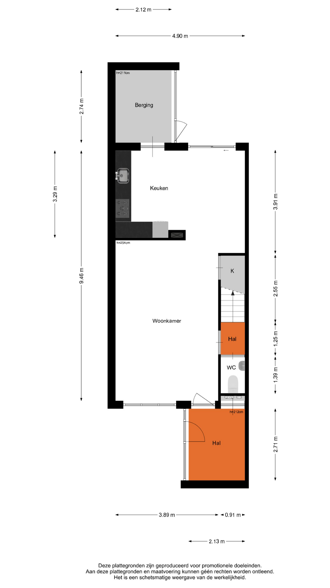 Je komt de woning binnen in de opvallend ruime entreehal, waar je alle ruimte hebt voor je jassen, schoenen, wandelwagen et cetera. De hal is voorzien van kunststofkozijnen met HR++ glas en een kunststof voordeur en ook de meterkast is hier gesitueerd.