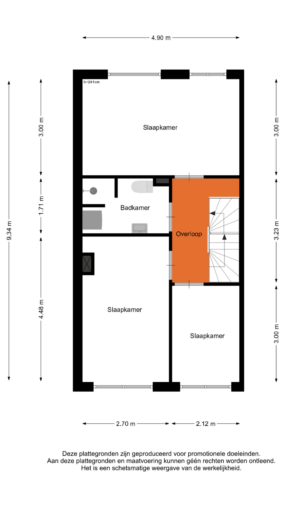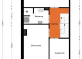 Aan de ruime overloop grenzen 3 slaapkamers en de badkamer. De slaapkamers zijn allen recht opgetrokken en in combinatie met het formaat (15, 12 en 6m2) daardoor ook praktisch in te richten. De hoge en deels schuin aflopende plafonds zorgen niet alleen voor een ruimtelijk gevoel, maar onderscheidt deze woning ook van andere eengezinswoningen.